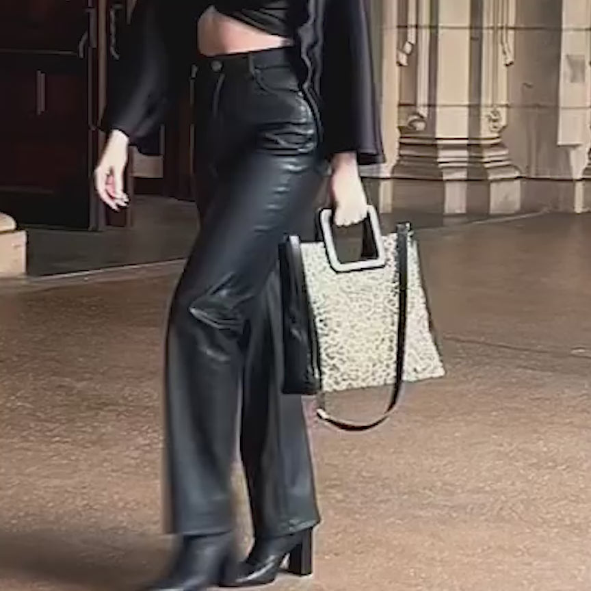 Large Leather Print Handbag With A Square Handle