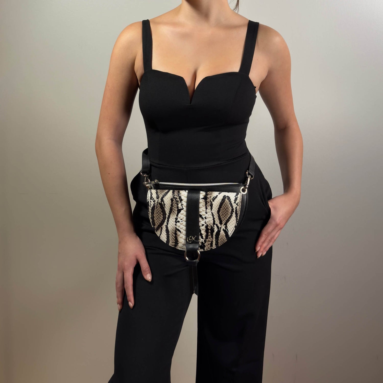 A crown jewel in the GK Collection. "Divine" is an impeccably crafted belt bag that effortlessly transitions into a sophisticated shoulder or crossbody bag, perfect for designer belt bags enthusiasts. With three meticulously designed compartments, it is the quintessential accessory to house all your essentials while navigating the urban landscape or embarking on transcontinental journeys. Whether you're heading to work or play, you will love using your belt bag as a fanny pack, crossbody bag or shoulder bag.